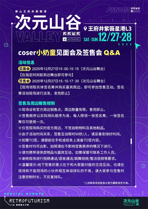 顶流福利率先登场,知名coser小奶童babedoll将亲临现场开展限定签售活动,粉丝们可近距离与本命互动,获取专属签名,实现“贴贴”心愿。