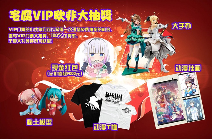 小伙伴们测试欧皇非酋的时间又到了!ZF13无锡&苏州两场继续总价值超过2000元!的现金!红包雨!只要购买VIP门票即可参与抽奖一次,多个红包内现金金额不等!还有各种手办、粘土人、抱枕等动漫周边大奖等你来抽!中奖率百分之百哦!
