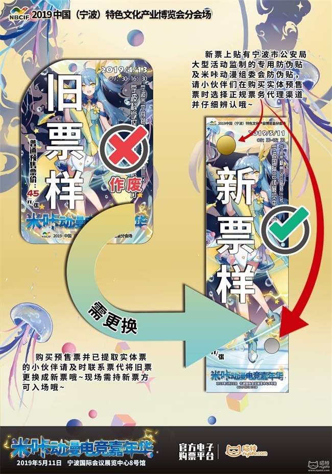 5.11米咔动漫电竞嘉年华!最新资讯来啦! 各位亲爱的小伙伴们!因为活动变更的缘故,原来4.11的旧票现在已作废!!已经购买了实体预售票的小伙伴!可以联系票代进行更换! 雀姬比赛持续报名中!快来报名赢大奖吧~ 现场还有X-Time还魂蛊虫实体场景体验! 还有小茗同学带你漫游大英博物馆!!!更有优酷动漫众多动漫ip!!! 还有银魂限量版物料周边!!先到先得噢~5月11日宁波国际会展中心8号馆米咔动漫电竞嘉年华等你哟~