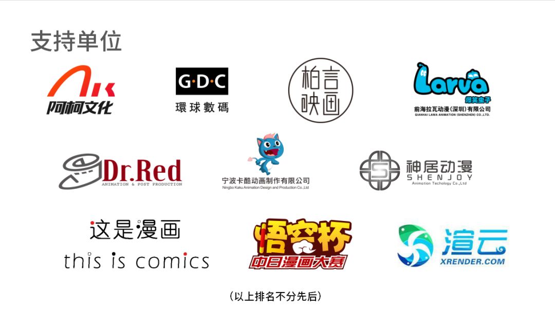 “昭羊杯”首届动漫行业年度人物评选衷心感谢(以下排名不分先后)阿柯文化、环球数码、柏言映画、前海拉瓦、臻优创意、宁波卡酷动画、神居动漫、这是漫画、悟空杯、渲云渲染给予的帮助。