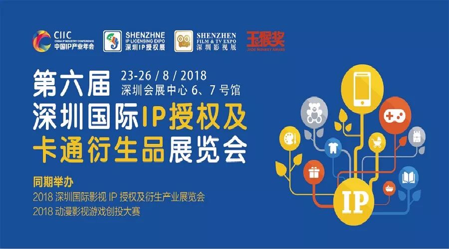 第六届深圳IP授权展将于2018年8月23—26 日在深圳会展中心6、7号馆隆重举行。届时将与“深圳影视展”、“深圳潮玩展”、“深圳创作人展”、“深圳潮玩漫控嘉年华”同期举办,旨在推动跨界资源整合、促进文创与产业融合发展、打造中国IP产业创新交易平台。