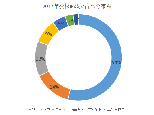 2014年,以动漫影视为主的形象授权市场规模达到1070亿美元,占到全球市场的44%,而在中国,这一数值高达55.6%。而2017年,娱乐类IP同样占到国内整体市场的54%,显示了极强的覆盖率和潜在价值。