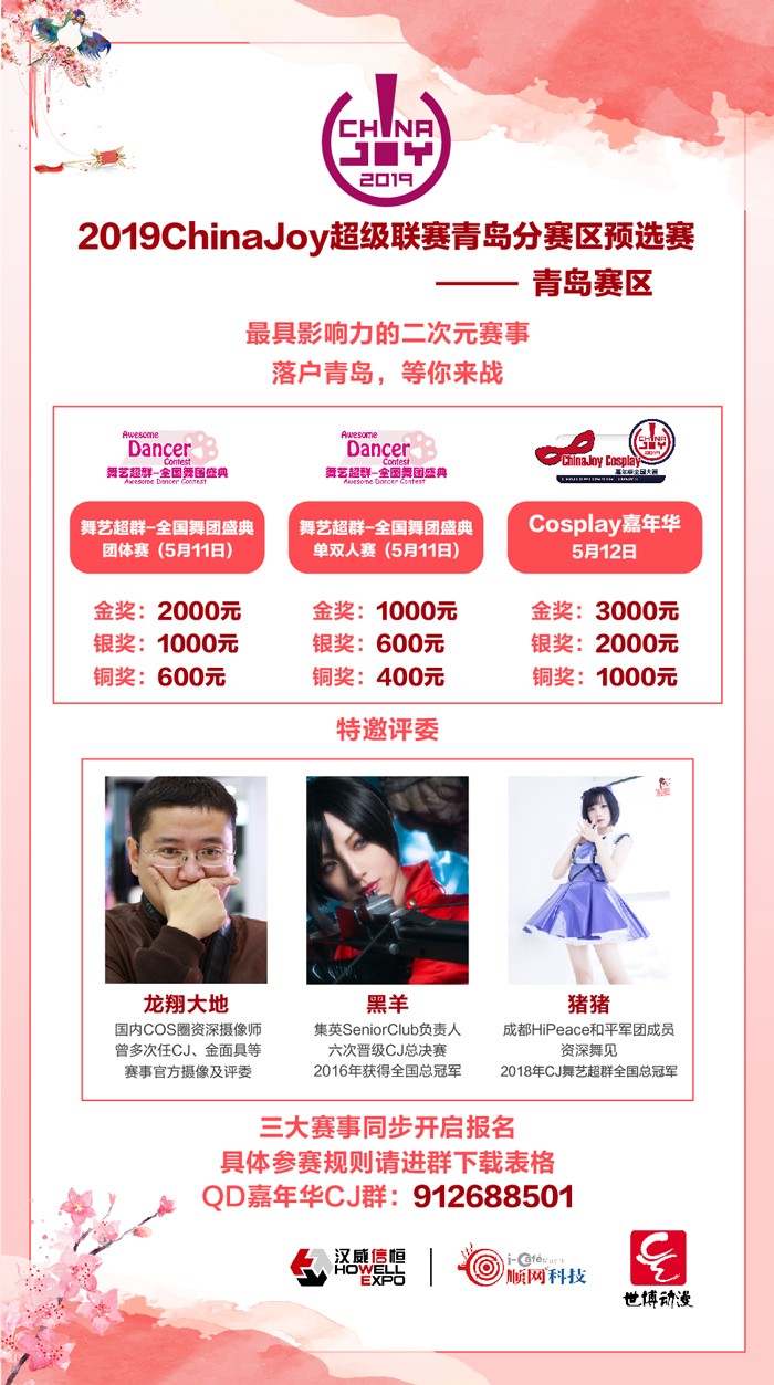 2019Chinajoy Cosplay青岛赛区比赛报名开启:@ChinaJoy官方微博@ChinaJoy次元煲2019Chinajioy?Cosplay舞台剧、舞艺超群单双人、舞艺超群团体赛报名解禁!特邀CJ资深评委@北京龙翔大地??@猪猪大怪兽?@集英sc_黑羊_??比赛总奖金高达11600元!报名Q群:912688501